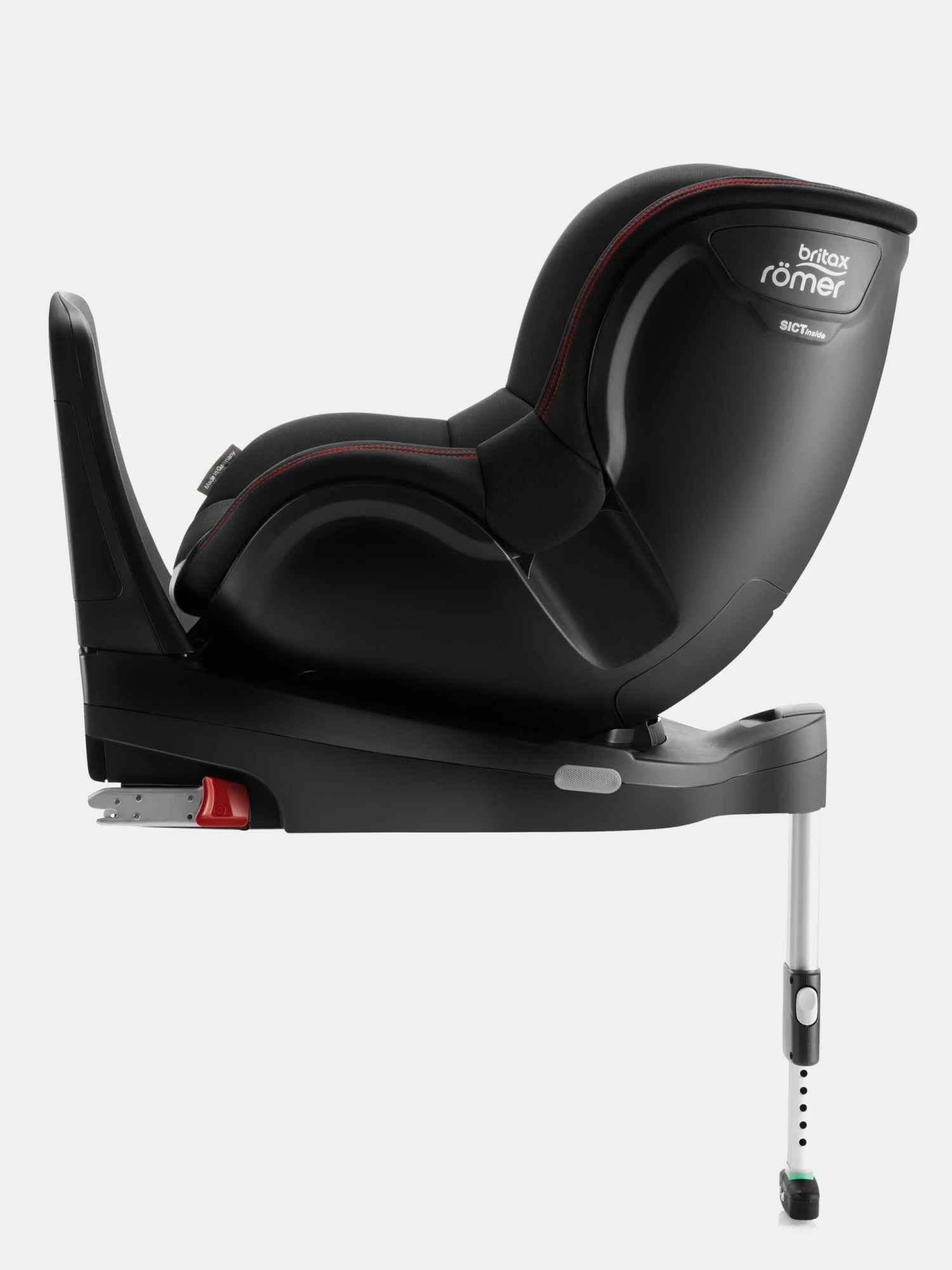 Ein sicherer und verantwortungsbewusster Einbau des Römer Dualfix i-Size ist erst unter Verwendung des Stützbeines abgeschlossen.